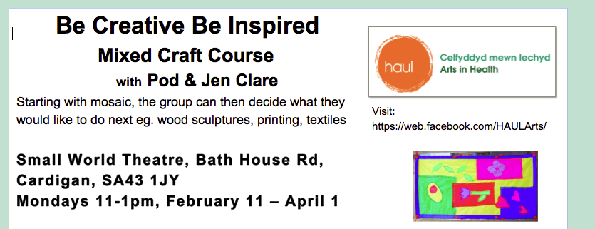 Workshops are FREE & run by HAUL – arts in health