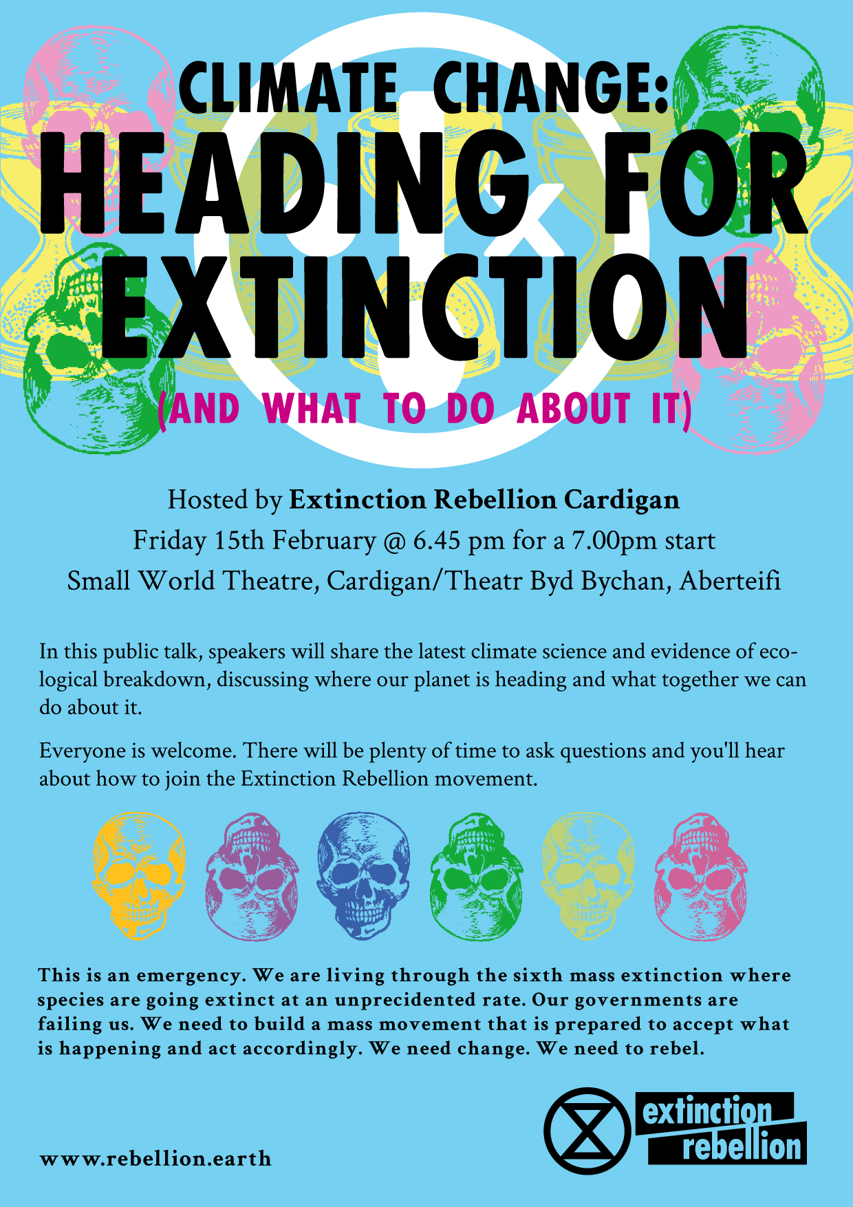 Come to this public talk hosted by Extinction Rebellion Cardigan. Speakers will share the latest climate science and evidence of ecological breakdown discussing where our planet is heading and what together we can do about it.