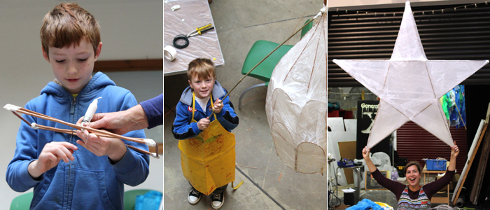 Mae’r llusernau’n cael eu creu o bapur tusw a glud PVA, felly dewch i’r sesiynau creu mewn hen ddillad (bydd rhai ffedogau ar gael hefyd).