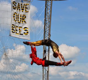 Jess trained as a dancer, latterly with an MA in dance performance from Coventry University and a practice-based PhD in performance and eco-activism from the University of Manchester. She has worked as dance lecturer (contact improvisation/somatics/community dance) and as an aerial performer (counterweight/bungee) for Full Tilt Aerial Theatre, Invisible Circus and inclusive companies Blue Eyed Soul and Everybody Dance, co-leading aerial workshops for disabled and nondisabled children and adults. Her circus experience comes from intensives at Circus Maniacs (Bristol) with a focus on corde lisse and further training with Justine Squire and Rowan Fae. She is a certified AeroZen aerial yoga teacher. jessallen.org.uk | awyrol.co.uk