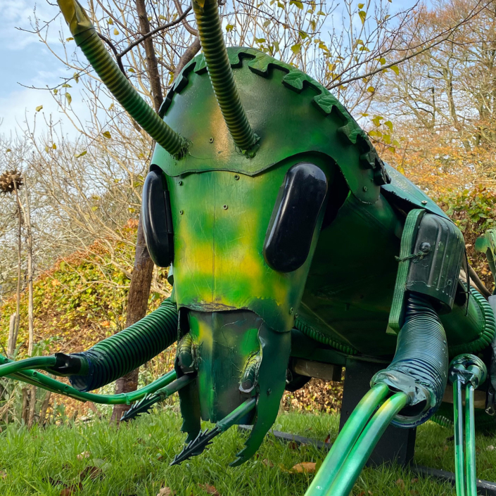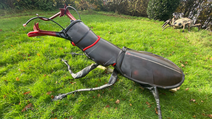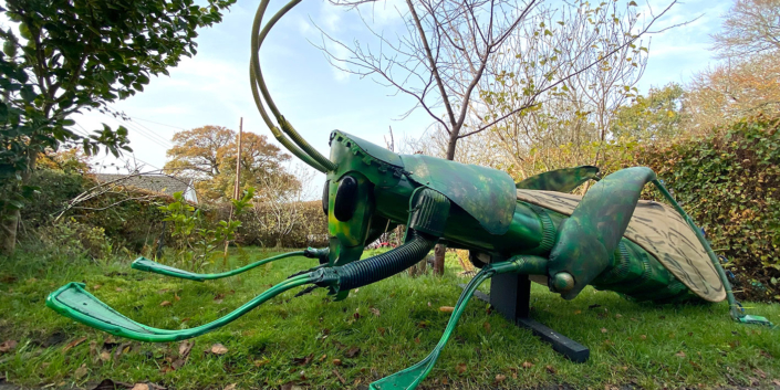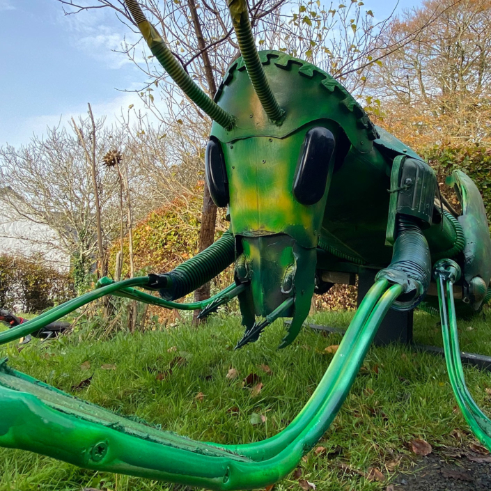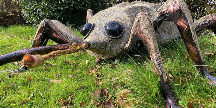 “ Fe ddewison ni greu sioncyn y gwair, gwiddonyn y mes a chwilen gorniog am eu bod nhw i gyd yn bwysig i gadwraeth bioamrywiaeth gyfoethog yr ardal hon,” meddai’r artist Ann Shrosbree. “Gobeithio y byddan nhw’n llenwi’r dref â gwen.” Mae’r sioe eleni yn digwydd yng Nghastell Gwrych ger Abergele.