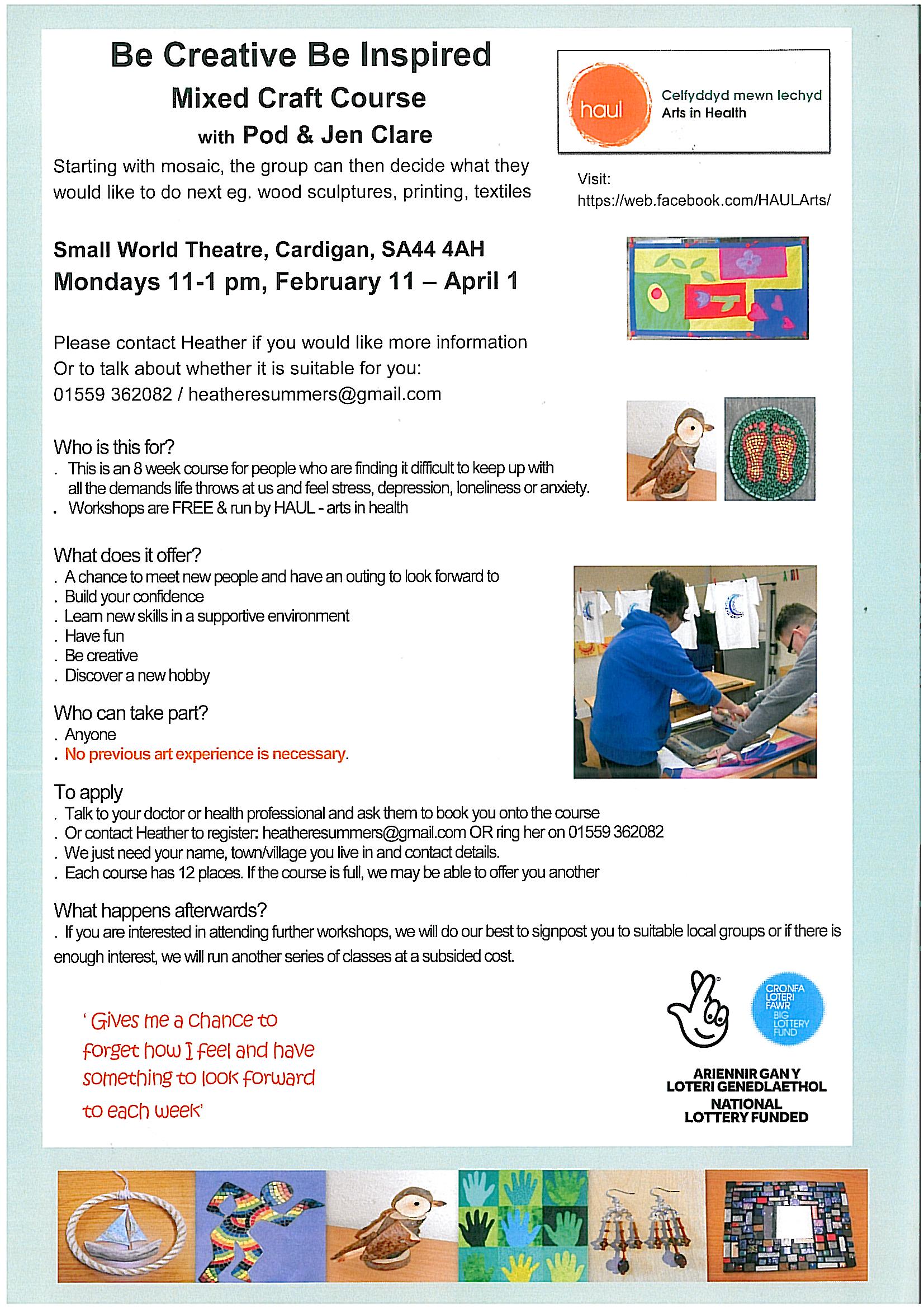A chance to be creative, meet new people, have an outing to look forward to, learn new skills in a supportive environment, discover a new hobby, build your confidence.