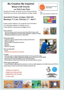 A chance to be creative, meet new people, have an outing to look forward to, learn new skills in a supportive environment, discover a new hobby, build your confidence.