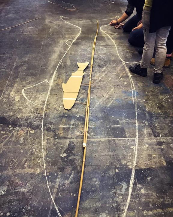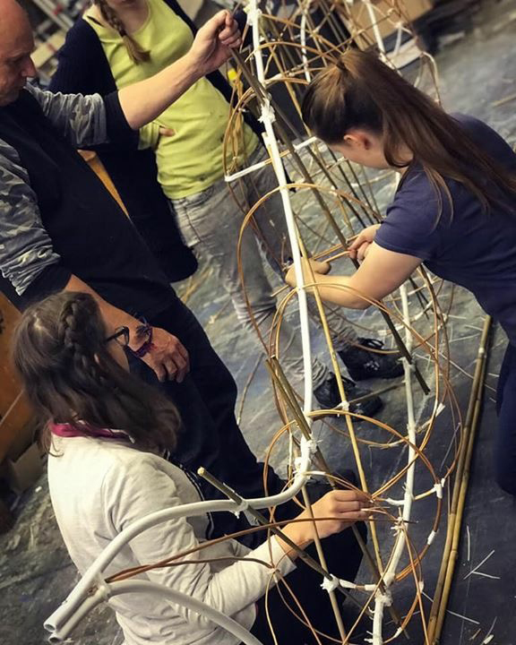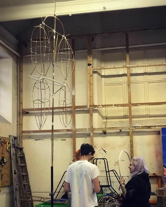 Small World Theatre artists worked with UWTSD BA Theatre Design and Production students to develop puppet making skills and create giant structures and articulated lanterns.